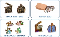 Det dobbeltsidede design gør det muligt at lægge puslespillet efter billedet eller efter mønsteret på bagsiden, takket være den detaljerede laserbearbejdning, som sikrer glatte kanter uden splinter. Den miljøvenlige udførelse i papemballage uden plast gør, at du kan have det godt både under samlingen og i forhold til bæredygtighed.
