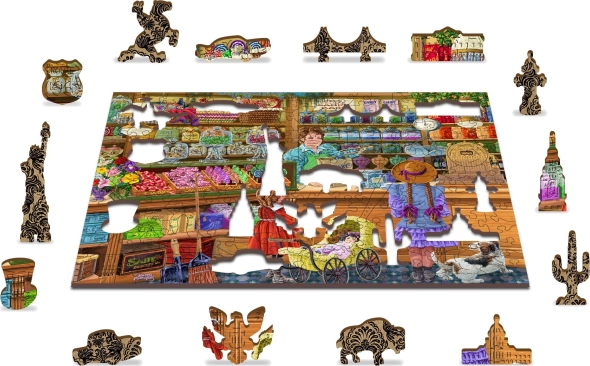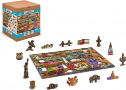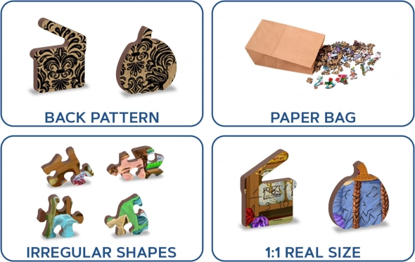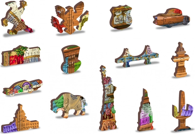 30 unikt formede brikker forestiller kendte bygninger, dyr eller genstande, som giver puslespillet særpræg og højere sværhedsgrad.