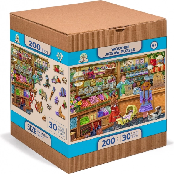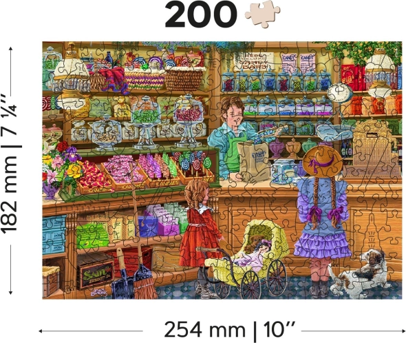 Saml et puslespil med 200 brikker, som ikke blot byder på et motiv fuld af farver og detaljer, men også trækker dig ind i de skjulte historier i hver brik, formet som kendte bygninger, dyr eller genstande. Variation i former løfter sværhedsgraden og giver mere udfordring og underholdning under lægningen.
