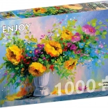 Nyd afslapning med at lægge de kvalitetsrige ENJOY-puslespil med motivet buket med gule blomster. Pakken indeholder 1000 brikker, og det færdige billede måler ca. 68 × 48 cm – ideelt til indramning. Et fremragende valg til afslapning, træning af koncentration og glæden ved at blive færdig.