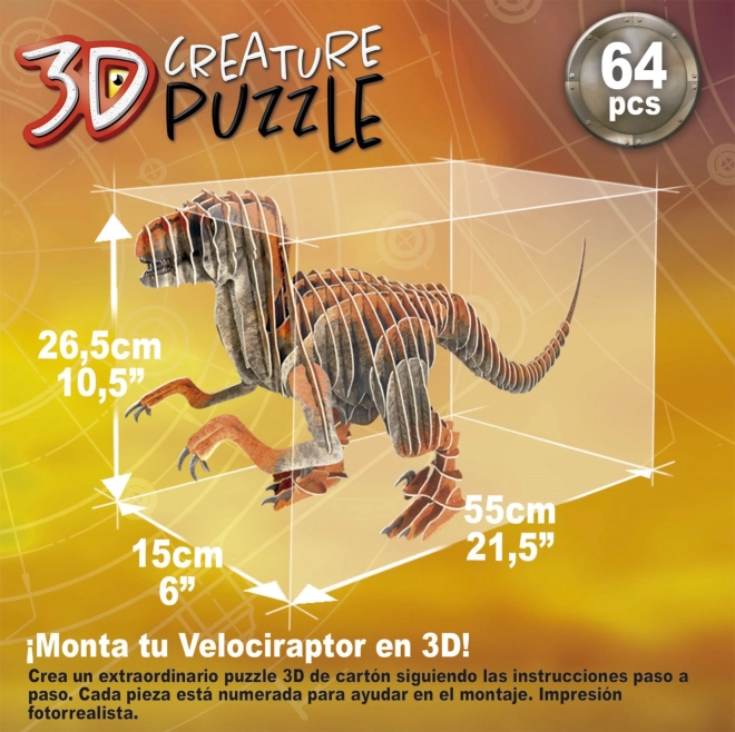 Opdag klog underholdning for både små og store. 3D-puslespillet af en velociraptor samles trin for trin efter nummererede brikker og pile, så det er velegnet selv for begyndere. Brikkerne trykkes nemt ud af kartonarkene og låses fast i hinanden – uden behov for lim eller saks.