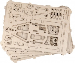 119 laserskårne dele af birkekrydsfiner passer nøjagtigt sammen. Bygningen er ren, intuitiv og kan klares selv af begyndere.