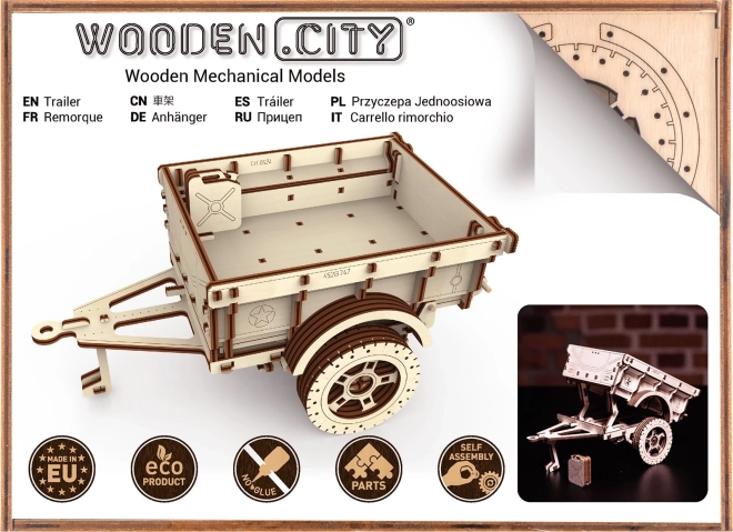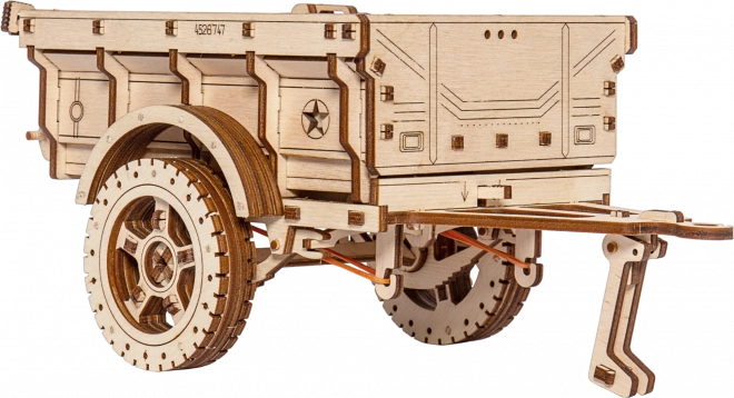 Militærtraileren WOODEN CITY er et stilfuldt mekanisk træbyggesæt, der glæder enhver teknik- og modelentusiast. Takket være præcis laserudskæring i birkekrydsfiner passer delene nøjagtigt sammen – samlingen foregår uden lim og er ren, hurtig og sjov. Resultatet er en iøjnefaldende dekorativ model med funktionelle elementer, der passer perfekt sammen med for eksempel en træbil som Jeep 4x4.