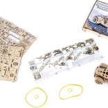 Det er en mekanisk model, der samles uden lim eller værktøj, hvilket giver fordelen af enkelhed og miljøhensyn takket være brugen af birkekrydsfiner. En illustreret manual er inkluderet for at gøre samlingen lettere. Kræver minimalt tilbehør som en knækkniv og voks for problemfri drift.