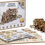 Træmodellen Drømmenes Ekspres er en ideel gave til entusiaster af jernbanernes verden og til elskere af mekaniske hovedbrud. Dette 3D-puslespil er designet til at give timevis af underholdning og indsigt i mekanik. Modellen samles uden brug af lim eller værktøj og er fremstillet af miljøvenlige materialer, nærmere bestemt kvalitets birkekrydsfiner. Når den er samlet, kan du fuldt ud nyde dens mekaniske funktioner, der drives af en elastikmotor.