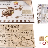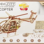 Mekanisk byggesæt i træ af en militærhelikopter fra WOODEN CITY tilbyder timevis af underholdning med unikke detaljer og funktionalitet for model- og luftfartsentusiaster.