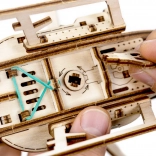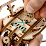Fremstillet af højkvalitets birkekrydsfiner tilbyder modellen et miljøvenligt alternativ til plastiklegetøj. Den kræver ikke lim eller værktøj, hvilket gør den til et rent og grønt projekt. Træpuslespillet indeholder gummimotorer og tandhjul, som vækker modellen til live.
