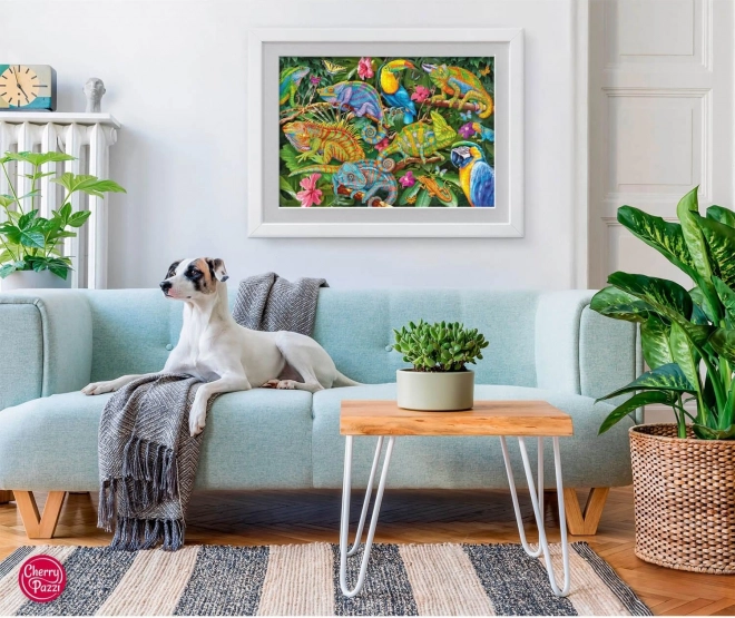 Dette smukke puslespil med kamæleonmotiv er ideelt for elskere af puslespil og natur. Med 2000 brikker tilbyder det en udfordring for erfarne puslespilløbere. Det færdige puslespil har dimensioner på 100 x 70 cm, hvilket er stort nok til at fremhæve alle detaljer i motivet. Dyk ned i kamæleonernes verden og nyd timer af sjov og afslapning med familie eller venner.