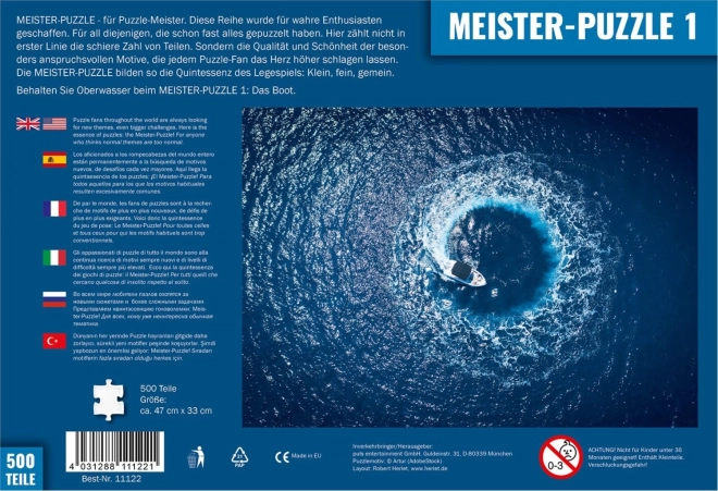 Meister-puzzle 1: skib er designet til erfarne puslespilsentusiaster, der søger højere sværhedsgrad og kan lide at fordybe sig i detaljen. Takket være det meget krævende skibsmotiv får du mange timers gennemtænkt samling og en velfortjent følelse af at fuldende værket i størrelsen ca. 47 × 33 cm.