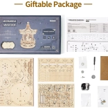 Når det er blevet samlet, vil automaten pryde din hylde, og dens detaljerede design vil begejstre dig. For at gøre øjeblikkene under samlingen mere behagelige kan du spille en romantisk melodi takket være den kvalitative 18-toners boks lavet af japanske komponenter.