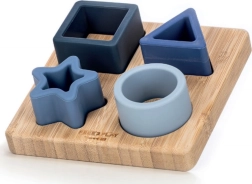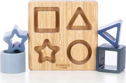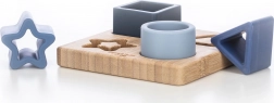 Denne kvalitets træ-indsætningsboks med blå silikondele (kvadrat, trekant, stjerne og cirkel) er designet til naturligt at hjælpe børn med at genkende former og farver. Den bløde overflade på delene er behagelig at røre ved, ligger godt i hånden og motiverer til gentagen leg.