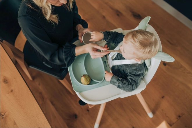Med denne praktiske bjørneformede tallerken bliver hvert måltid både sikrere og sjovere. Den stærke sugekop i bunden forhindrer, at den vælter eller glider på bordet, så maden bliver, hvor den skal. Det bløde og lette materiale er skånsomt mod små hænder og behageligt at røre ved.
