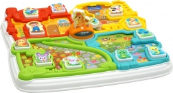 Den interaktive gård tilbyder fire farverigt adskilte områder 7F7F hjemmet, stalden, haven og dammen. Den indeholder også en indsætter med 12 brikker, som børn kan bruge som figurer i andre lege. Den roterende bi rundt om broen giver et ekstra sjovt element.