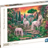 Oplev et smukt motiv, der glæder både fantasy-elskere og dem, der nyder afslappende puslespil. Puslespillet med 2000 brikker Enhjørninger i haven er ideelt for alle, der søger en kombination af rolig underholdning og mental udfordring. Takket være præcis tryk og solid karton forbindes brikkerne let og holder formen.