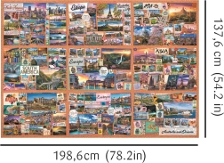 9 puslespil (hver med 1500 stykker) kan samles til et gigantisk billede efter plakat eller skabe dit eget design. Den samlede dimension ifølge manualen er 1985,6 x 1376 mm*. Med UFT-teknologien kan stykkerne samles på forskellige måder og dermed ændre dimensionerne af det færdige billede.