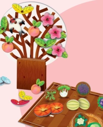 Farverige og aftagelige dele som blade, blomster og frugter tillader kreativ leg.