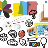 Clementonis Montessori-sæt er designet til at udvide børns færdigheder inden for farver og kunst. Børn kan eksperimentere med farver og bruge forskellige kunstneriske værktøjer: