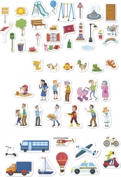 Pakken indeholder 55 billedbrikker med ord, som børn kan kombinere igen og igen for at skabe nye situationer.