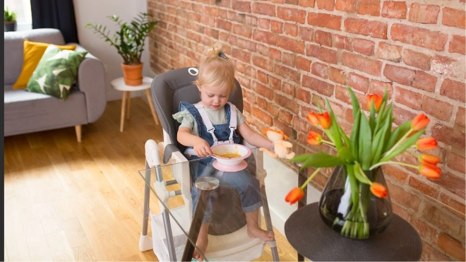 Fremstillet med fokus på sikkerhed og komfort: højstolen opfylder standarden EN 14988, har en forstærket ramme og 5-punkts seler skånsomme mod barnets hud. Takket være 6-trins højderegulering, 3 vinker på ryglænets indstilling og 3-trins forskydning af bakken tilpasser du nemt siddepositionen til barnets alder og aktivitet.