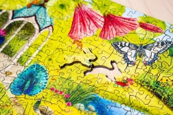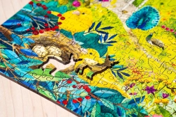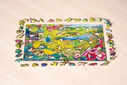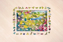 Dette unikke puslespil er lavet af træ med højkvalitets farvetryk. Hver brik har en helt unik form, hvilket giver en spændende byggeoplevelse. Her finder du brikker, der minder om rigtige dyr, blomster og andre genstande fra den virkelige verden.