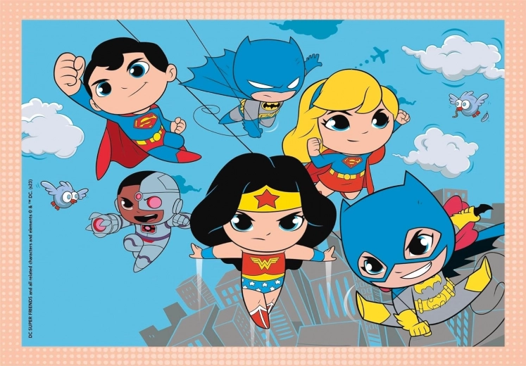 Dette farverige puslespilssæt bringer børnenes yndlingshelte fra DC Super Friends i fire forskellige sværhedsgrader. Takket være Super Color-teknologien skiller motiverne sig ud med mættede og langtidsholdbare farver, der begejstrer ved hver samling.