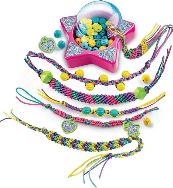 Opdag et sjovt kreativt sæt til børn fra 7 år, hvor du nemt kan lave venskabsarmbånd, vedhæng og stilfulde halskæder i klare farver. Sættet indeholder et væv til fletning og specielle værktøjer til at skabe farverige pynt – uendelige kombinationer, skaberglæde og unikke accessories på ingen tid.