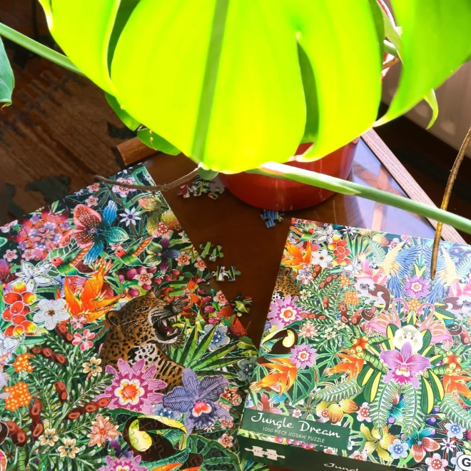 GIBSONS puslespil Jungle-drøm 1000 brikker fra kollektionen White Logo. Moderne motiv, præcise udstansninger, skabelon i pakken. Måler efter samling ca. 68 × 49 cm.