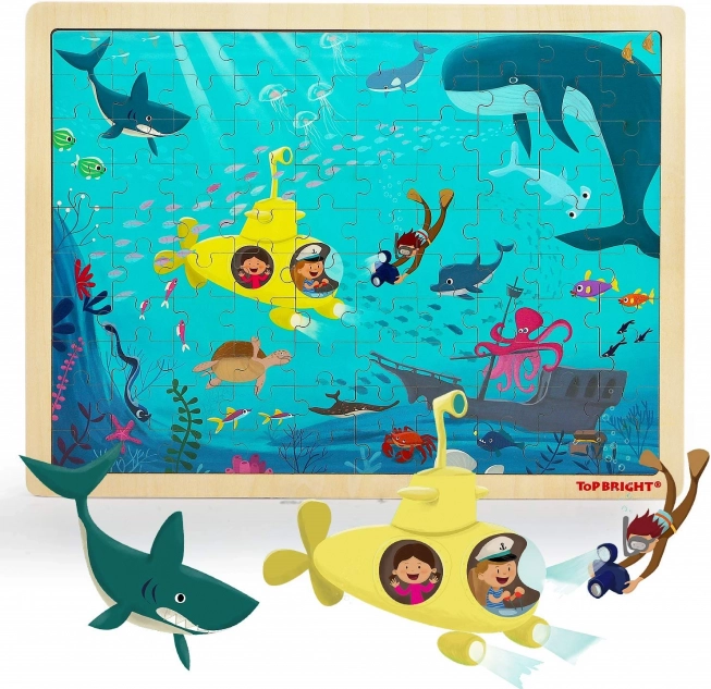 TOP BRIGHT Træpuslespil Havverden tilbyder sjov og udvikling af børns fantasi med 100 brikker på en solid plade, der fungerer som underlag.