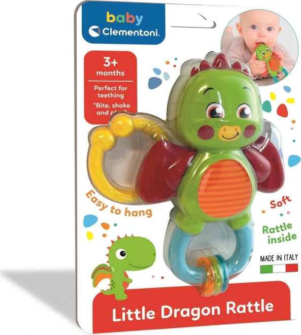 Sød interaktiv dragerangle, der understøtter multisensorisk udvikling takket være forskellige overflader og materialer. Den integrerede rangleindsats fanger barnets hørelse, mens det praktiske ophængsloop gør det let at fastgøre på barnevogn, tremmeseng eller autostol. En blød og ophængt legetøjsfigur til daglige opdagelser.