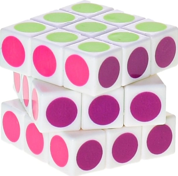 De runde farvede prikker på de enkelte sider hjælper dig med hurtigt at genkende målmotivet og øger fornøjelsen ved at løse terningen.