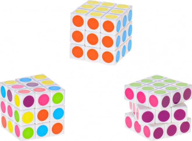 Denne kompakte hjernetrænings-terning med farvede prikker giver et frisk og legende alternativ til den klassiske rubiksterning. Takket være den glatte drejning og de tydeligt farvede cirkler er terningen perfekt til hurtige løsninger og afslappende øjeblikke i løbet af dagen.