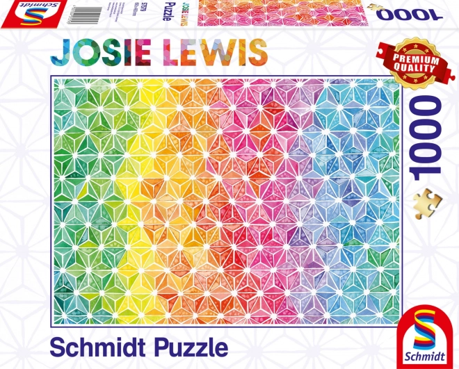 Nyd afslapning med et kvalitets‑puslespil fra SCHMIDT med motiv af farvede trekanter. Sættet med 1000 brikker byder på levende farver, præcis udstansning og et færdigt mål på cirka 69,3 × 49,3 cm – ideelt for elskere af moderne geometriske motiver.