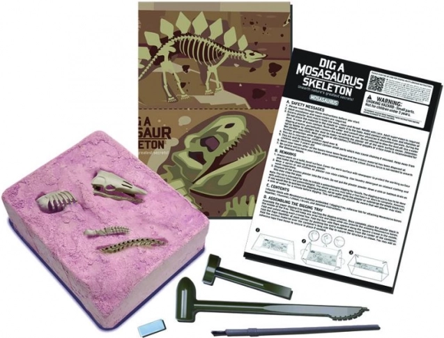 Oplev den fascinerende verden af forhistoriske skabninger med dette kreative sæt 4M Mosasaurus Skelet. Børn lærer præcision og tålmodighed ved at udgrave skeletdele fra gips.
