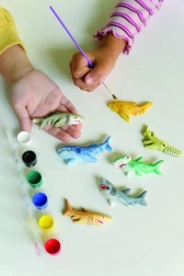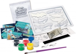 Slip børns kreativitet løs med dette sæt Fremstilling og maling Hajer. Børn kan støbe gipsfigurer af hajer og male dem efter deres egen fantasi, hvilket udvikler deres kreativitet og finmotorik.