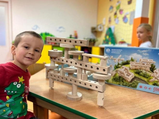 Takket være de solide komponenter i bøgetræ er dette byggesæt ikke kun miljøvenligt, men også holdbart i mange års leg.