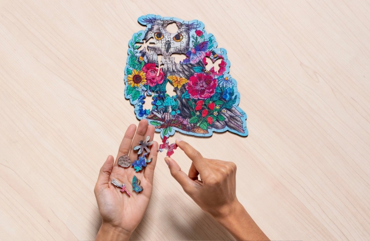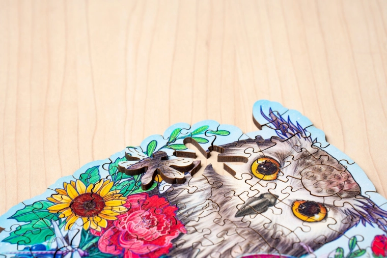 Lad dig opsluge af den mystiske ugle og saml et enestående træpuslespil, der kombinerer præcis håndværk, smukke farver og meningsfuld afslapning. Brikker med unikke former – fra dyr og blomster til abstrakte silhuetter – giver en behagelig udfordring og underholdning for hele familien.
