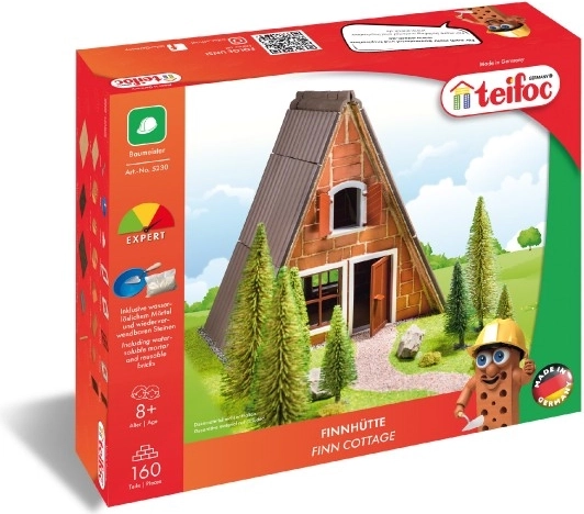 Oplev magien ved ægte byggeri med TEIFOC – finsk hytte af rigtige mursten. Bland naturlig majsmørtel, påfør den på miniaturemursten og byg din egen A-frame hytte. Byggesættet udvikler finmotorik, kreativitet og tålmodighed og kan bruges igen og igen – læg bygningen i blød, skil den ad og byg på ny. Fremstillet i Tyskland, ideelt til børn fra 6 år.