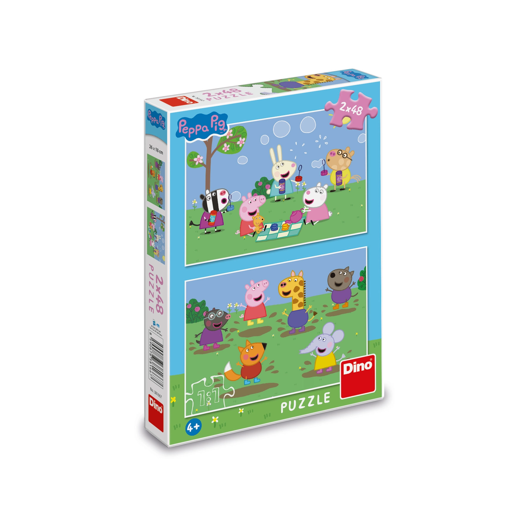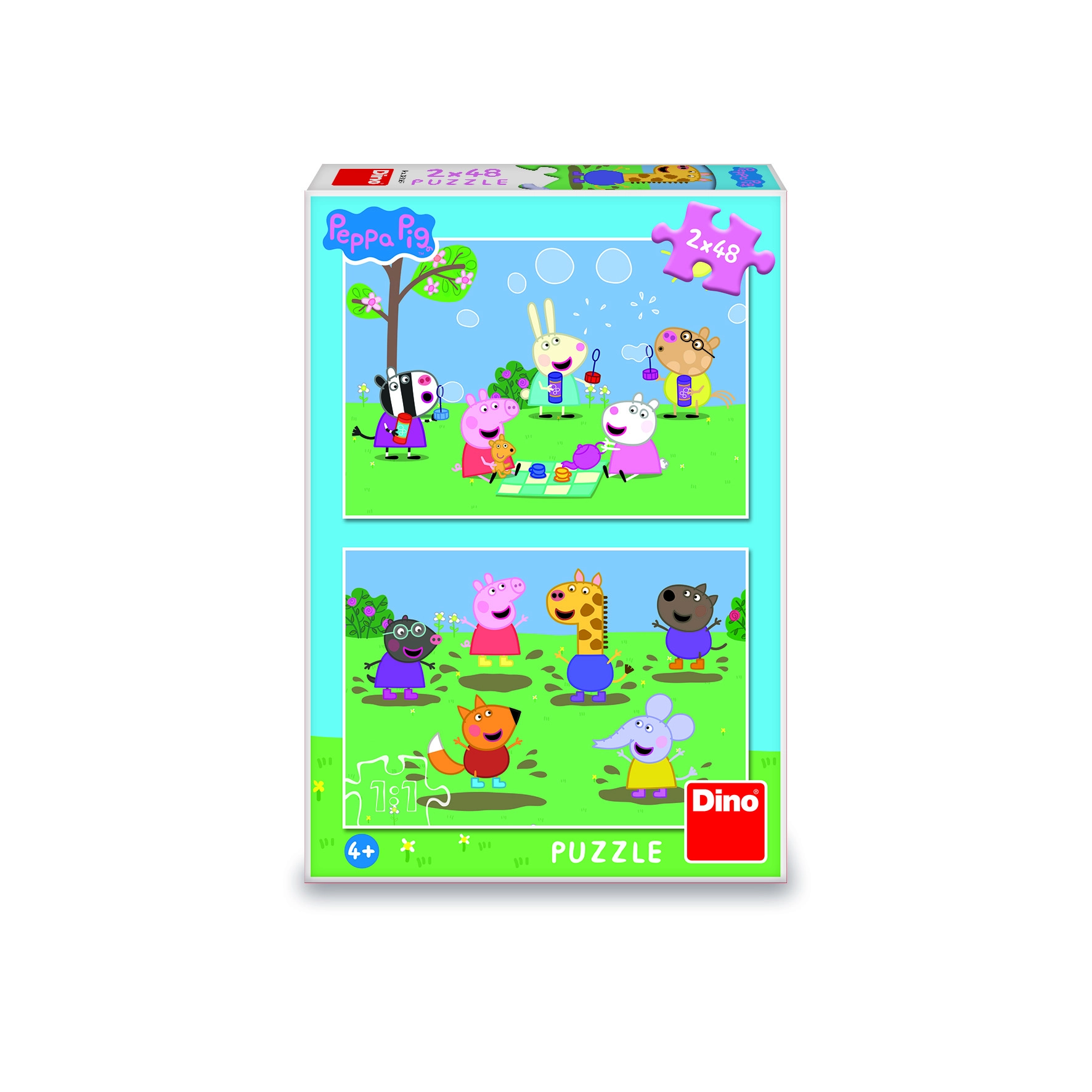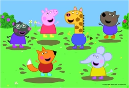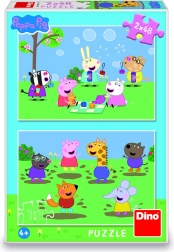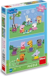 Puslespil 2-i-1 Gurli Gris/Peppa Pig og venner 2x48 brikker i æske 19x27x4 cm