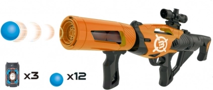 I pakken finder du 3 mål til præcisionstræning og 12 skumkugler til gentagen skydning. De bløde skumprojektiler er skånsomme og egnede til leg både inde og ude.