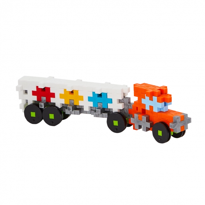 Kreativt sæt Plus-Plus lastbil indeholder 100 dele og er kompakt pakket i et praktisk rør, ideelt til rejser. Perfekt til at udvikle børns fantasi!