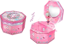 Det praktiske spejl og opbevaringsrummet rummer smykker, småting eller hemmelige skatte. Takket være det mekaniske optræk behøver det ingen batterier – giv det blot et optræk indimellem, så spiller musikken igen og igen.