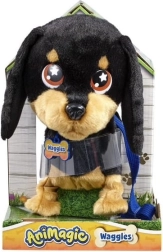 Den interaktive hund Waggles giver børn masser af glæde og stimulerer fantasien. Med realistiske bevægelser, lyde og reaktioner på berøring virker den som en ægte hvalp – og er altid klar til at blive nusset. Den bløde pels og de søde øjne vinder hurtigt små dyrepasseres hjerter.