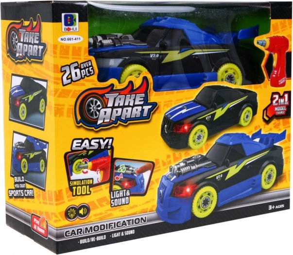 Sammenklappelige sportsbiler 2-i-1 til børn 3+ Elektrisk skruetrækker + skruetrækker + lyde Lys