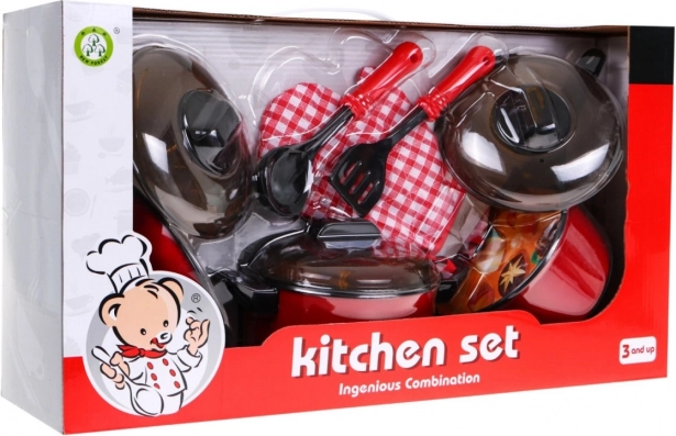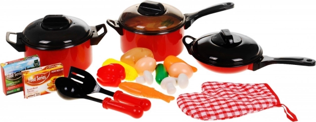 Dette fantastiske køkkensæt er ideelt til børn fra 3 år. Sættet indeholder forskellige gryder og pander med låg, køkkenredskaber og imitationer af mad til realistisk leg.
