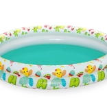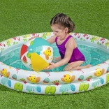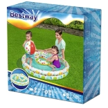 Sommersjov i haven på et øjeblik! Dette 3-i-1-sæt fra BESTWAY kombinerer et oppusteligt bassin med en diameter på 122 cm, en svømmering og en strandbold med glade tropiske motiver. Robust vinyl, dobbelt luftkammer og nem transport sikrer sikker og legende afkøling for de mindste.