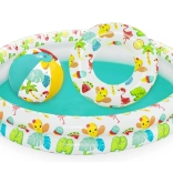 Det praktiske sæt til børn rummer alt, hvad du behøver til vandleg i haven eller på ferien. Bassinet med en diameter på 122 cm giver god plads til to børn, som kan nyde masser af sjov og afkøling. Med det tropiske design med frugter og dyr bliver hver dag udenfor en lille fest.
