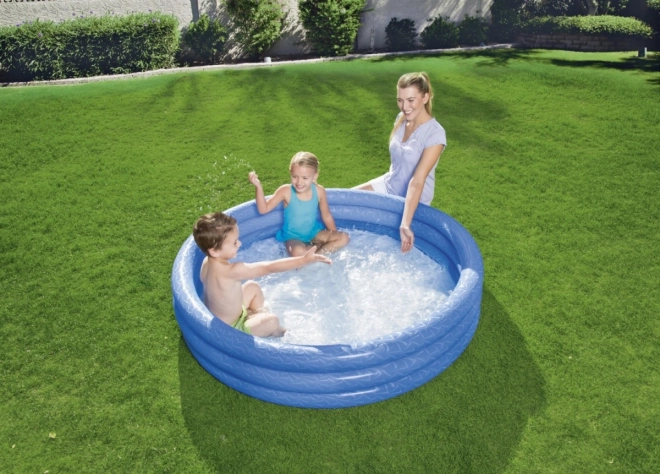 Det oppustelige børnebassin BESTWAY i størrelsen 152 × 30 cm er ideelt til sommerafkøling og sikker leg i haven. Konstruktionen med tre ens oppustelige ringe sikrer fremragende stabilitet, mens for-testet, holdbart vinyl med en tykkelse på 0,19 mm forlænger bassinjets levetid.