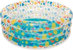 Denne oppustelige børnepool fra BESTWAY med gennemsigtige sider og farverigt frugtprint bringer sommerstemning og masser af vandsjov til haven. Med sine kompakte mål passer den også i mindre områder, og efter tømning opbevares den let.