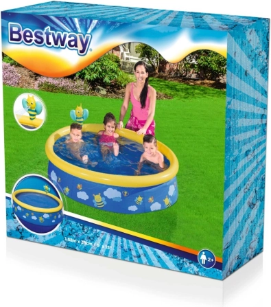 Giv børnene deres eget vandrige i haven. BESTWAY børnepool med bimotiv er hurtigt klar til brug, let at fylde og tømme, og takket være den oppustelige kant er den behagelig og sikker at røre ved for små svømmere. Den sjove spreder i bi-form forvandler almindelig plasken til munter leg.