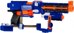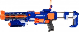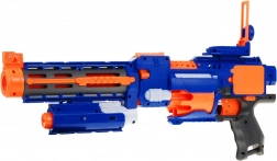 Det lange løb med stabiliseringsruller hjælper med at gøre pilenes flugt mere præcis, mens det skydelige servicevindue gør det nemt at fjerne fastklemte projektiler. Der er også en ON/OFF-kontakt til sikker aftrækkerblokering, frontindføring og et praktisk lasersigte for bedre sigtning. I pakken finder du 20 skumpile, så du kan spille med det samme.